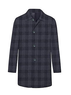 Navy and Mid Blue Tonal Flannel Cashmere Blend Plaid Mac