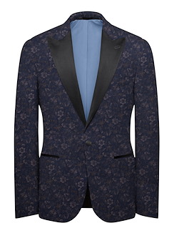 Navy and Blush Floral Jacquard Formal